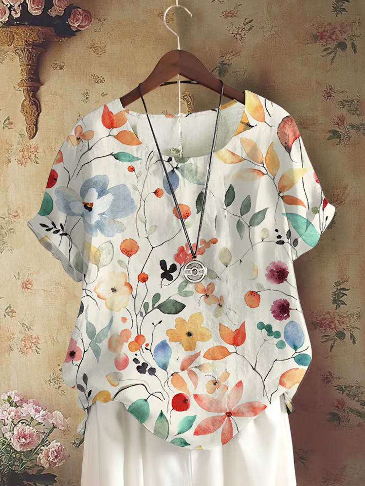 Simpfit Vintage T-Shirt aus Baumwolle mit Stickerei und frischem Blumenmuster