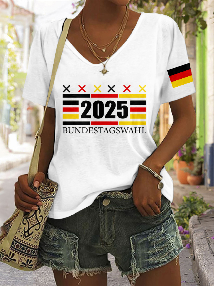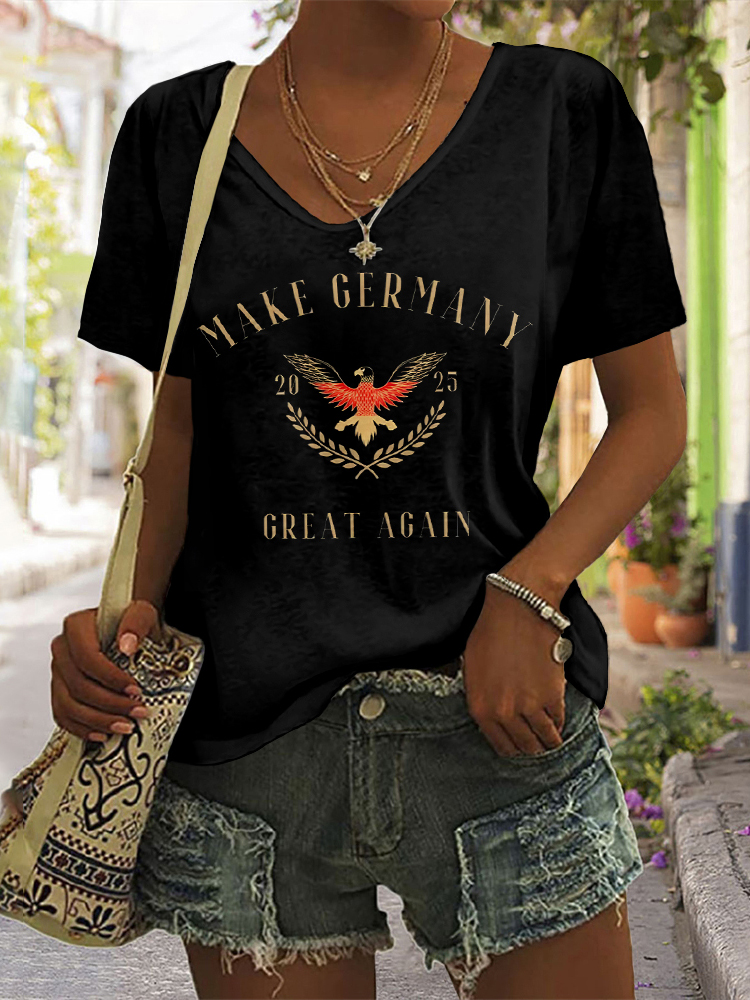 Simpfit T-Shirt mit V-Ausschnitt und kurzen Ärmeln und Kunstdruck im „Make Germany Great Again“-Motiv
