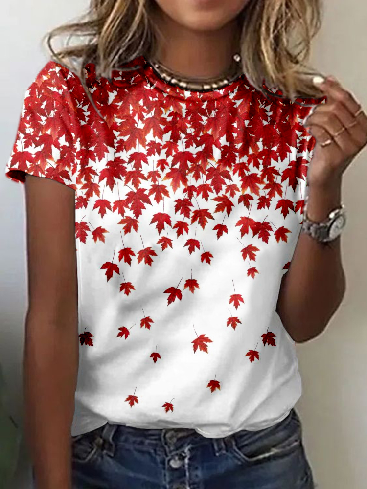 Simpfit Kurzärmliges, kuscheliges T-Shirt mit kanadischem Ahornblatt-Print