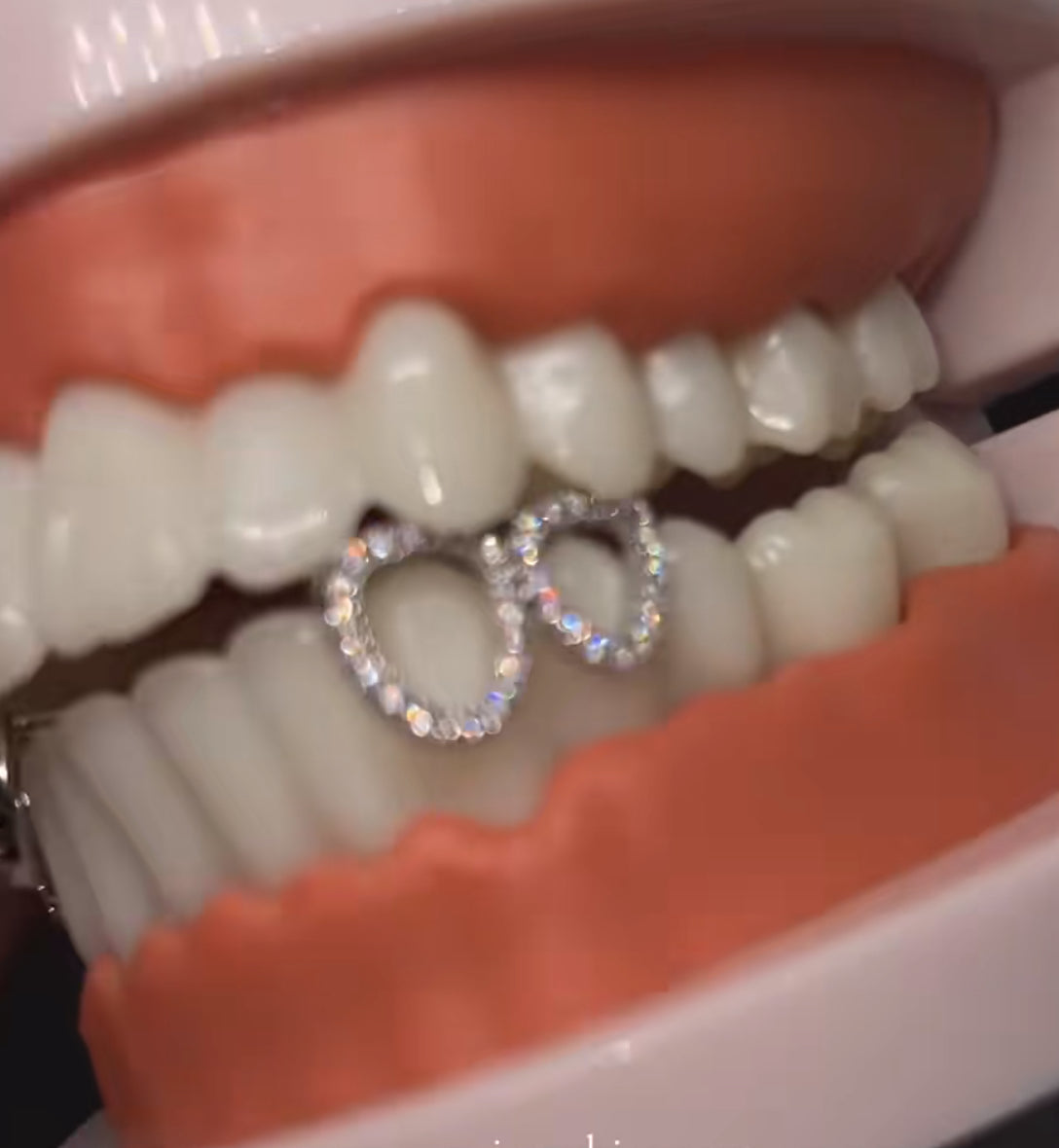 6. Using tongs to pick up the grillz, place them on to your teeth while the molding bar is still soft.