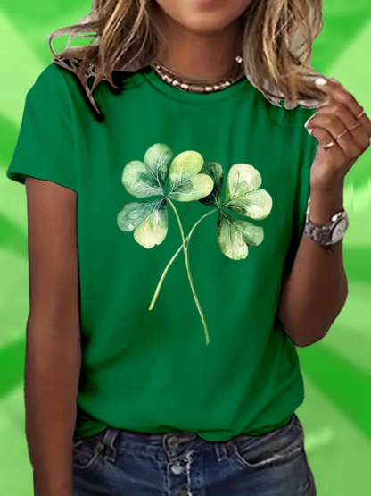 Simpfit Kurzärmliges T-Shirt mit Rundhalsausschnitt und Kleeblatt-Print zum St. Patrick's Day