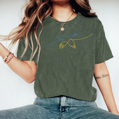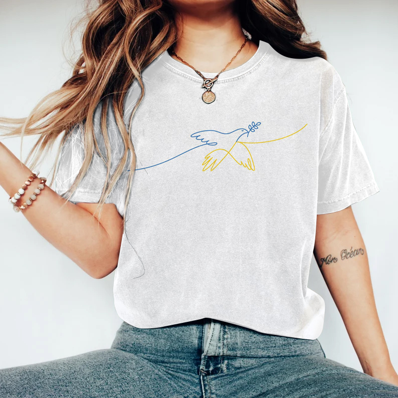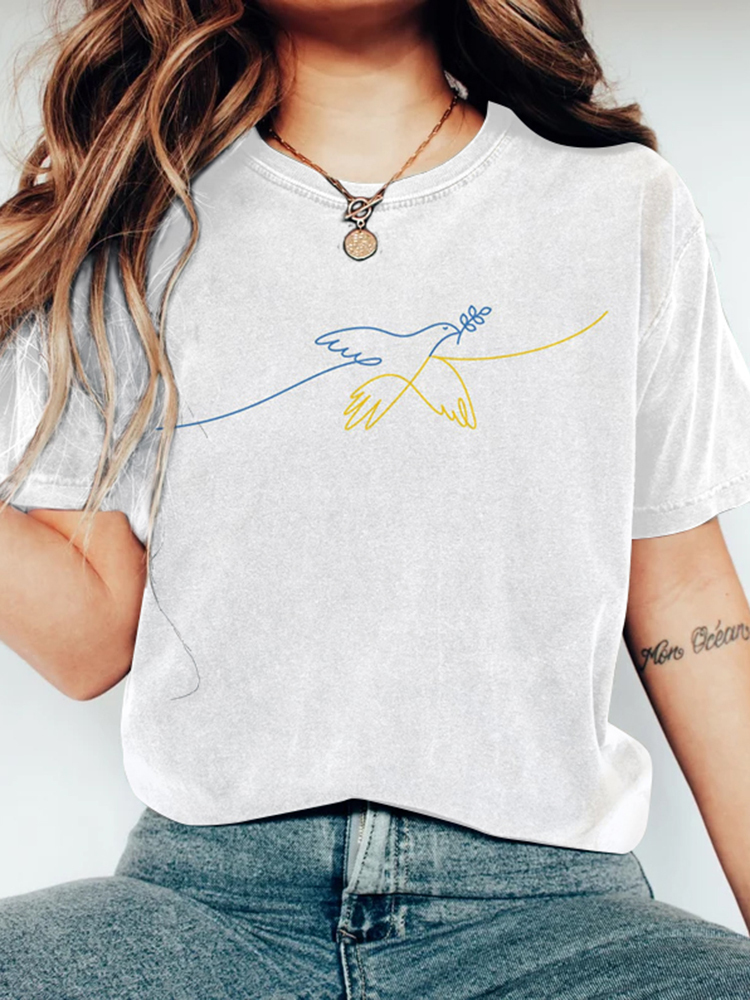 Simpfit Kurzärmliges T-Shirt mit ukrainischem Friedenstauben-Aufdruck für Damen