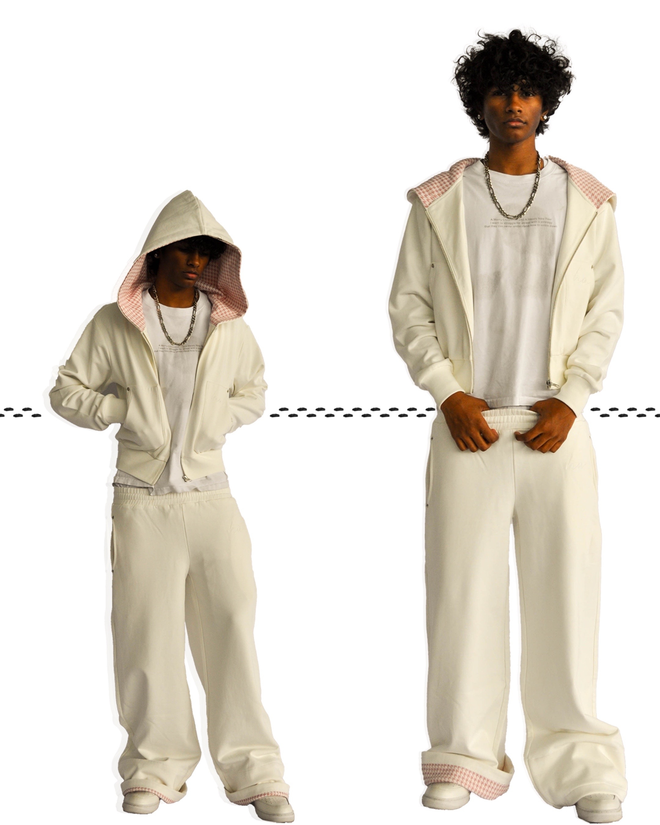 LAZY PLAID‑LINED ZIP UP HOODIE