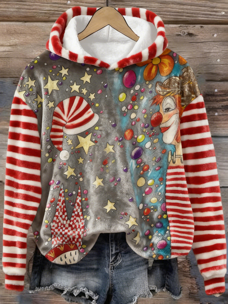 Simpfit Damen Flanell-Kapuzenpullover mit Clown-Streifenmuster
