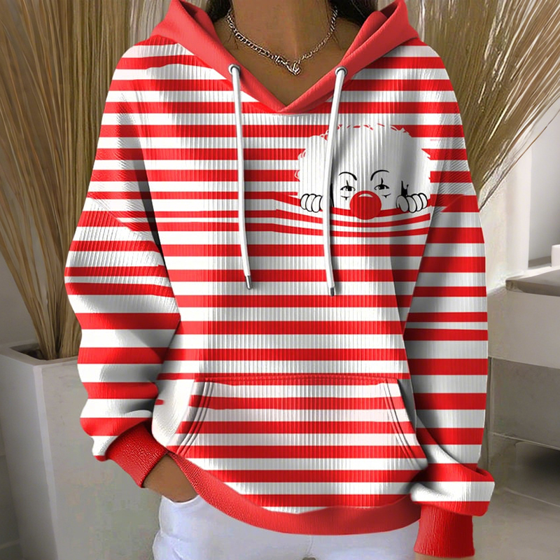 Simpfit Damen-Hoodie mit Clown-Streifenmuster und Kölnisch Wasser-Print