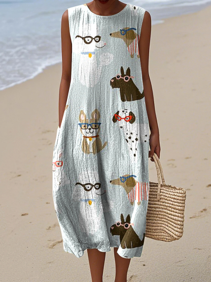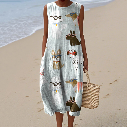 Simpfit Ärmelloses Kleid mit Retro-Motiv „Süße Hunde“ im Kunstdruck für Damen
