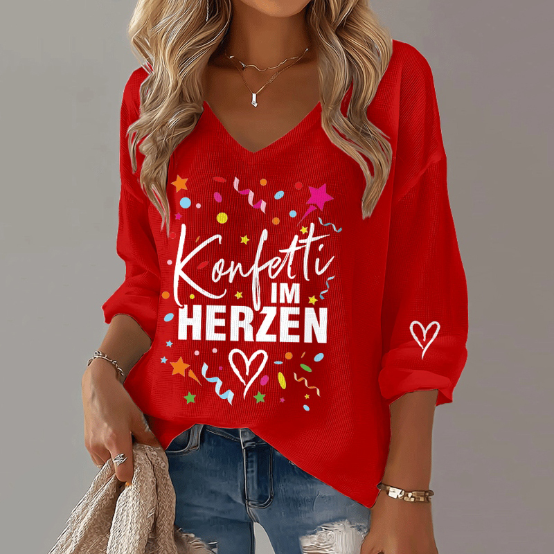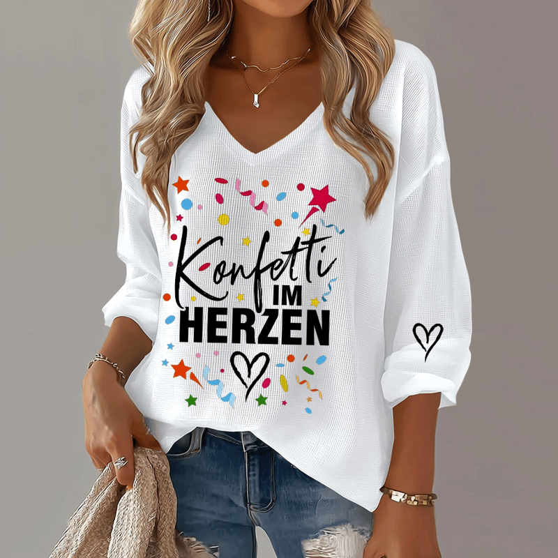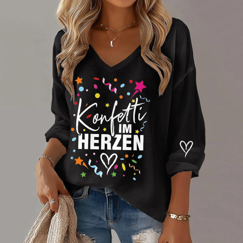 Simpfit Damen-T-Shirt mit V-Ausschnitt und Grafikprint „Celebration Cologne Carnival“
