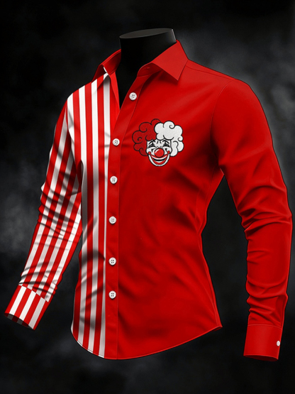 Simpfit Herren-Karnevalshemd mit farblich abgesetzten Streifen und Clownskopf-Print