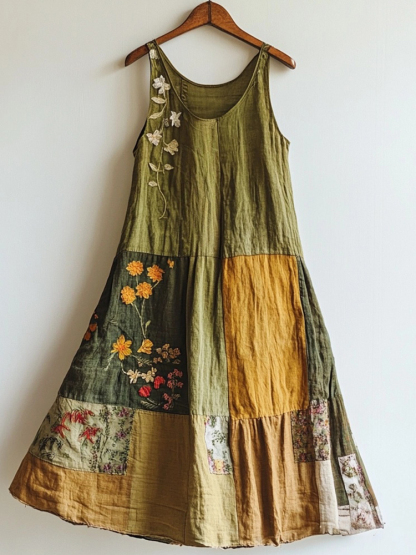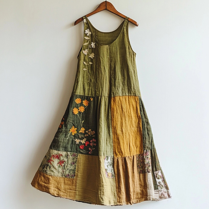 Simpfit Patchworkkleid Nachahmung aus Baumwolle und Leinendruck