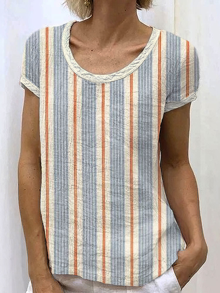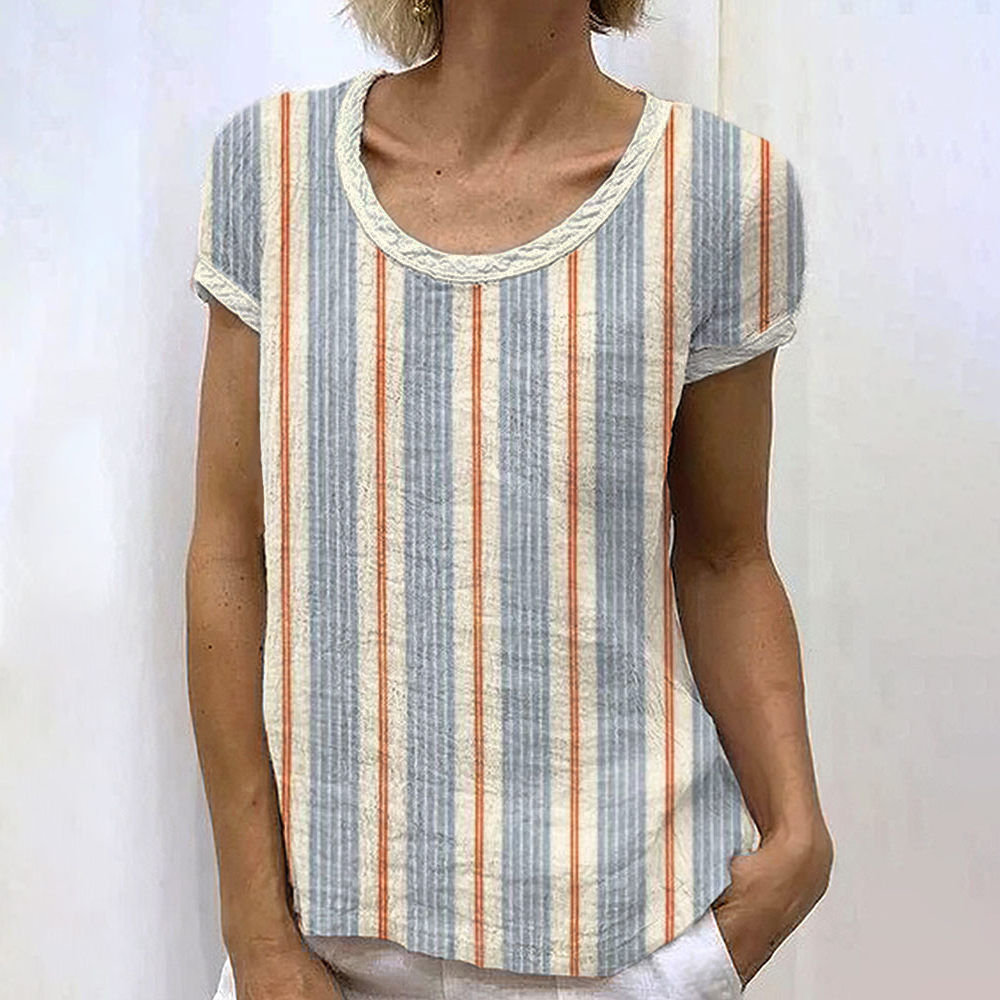 Simpfit Vintage Gestreiftes Damen Nachahmung aus Baumwolle und Leinen T-Shirt