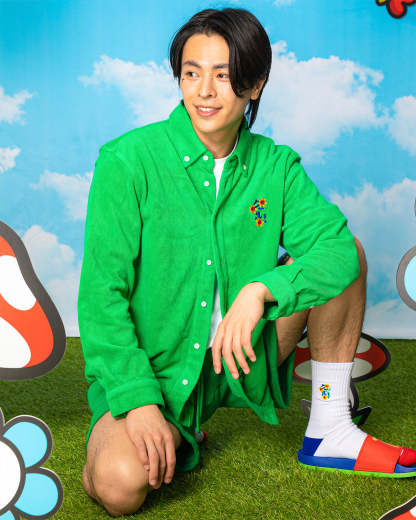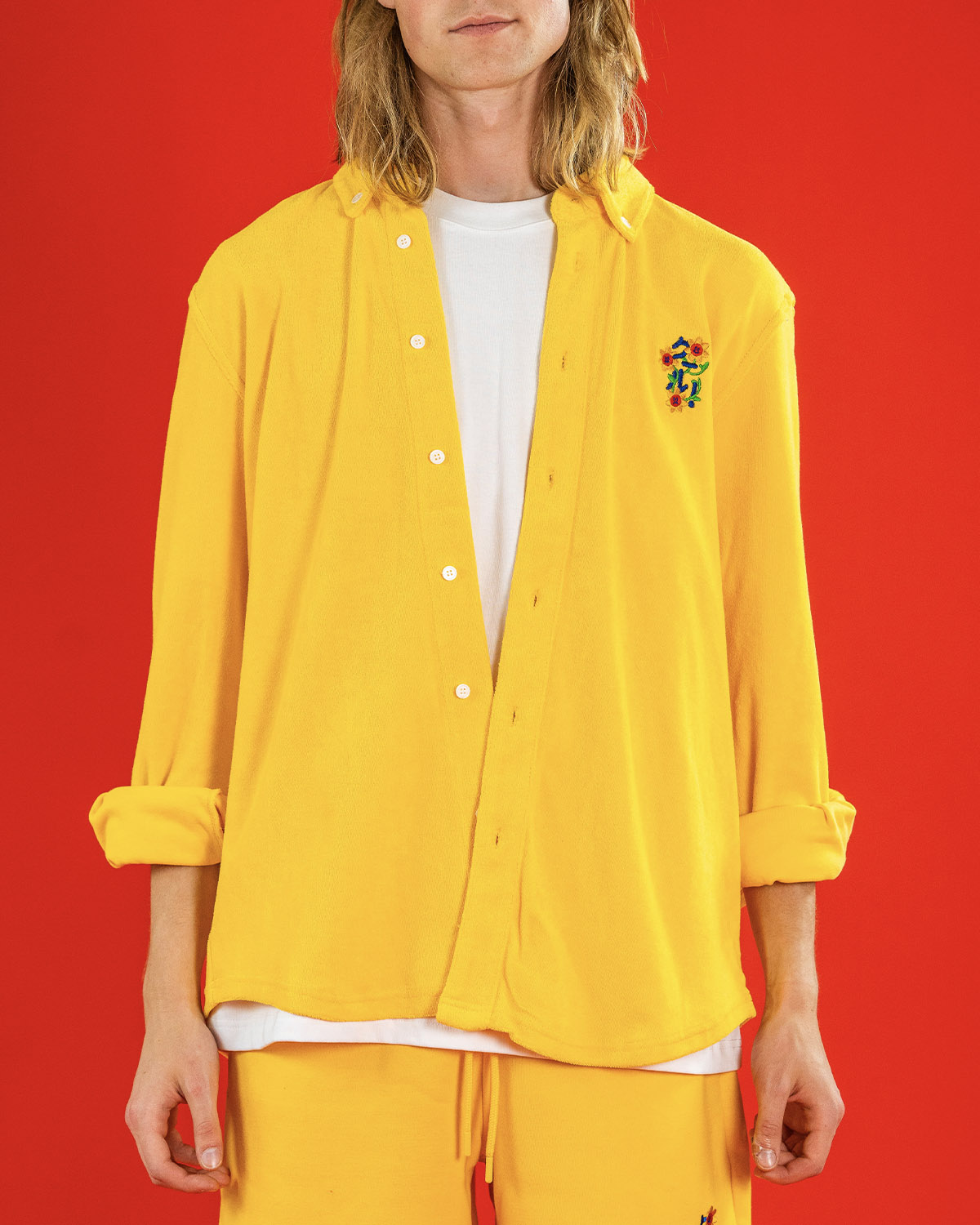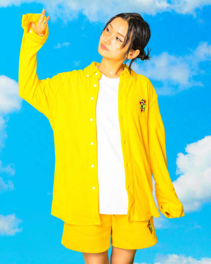 • Terry Towel Cotton Long Sleeve Button-Up Shirt